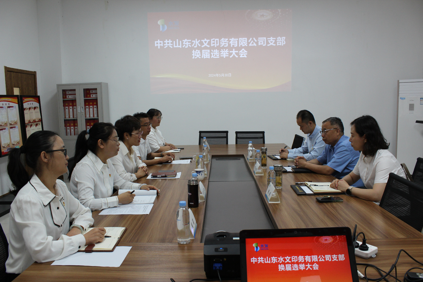 5月30日上午,水文印務(wù)黨支部召開黨員大會,進行換屆選舉。水發(fā)水控集團(籌)黨委副書記、副董事長蘆永強、黨群宣傳部部長張瑾到會督導(dǎo),公司支部書記、董事長張莉主持會議,全體黨員參會。