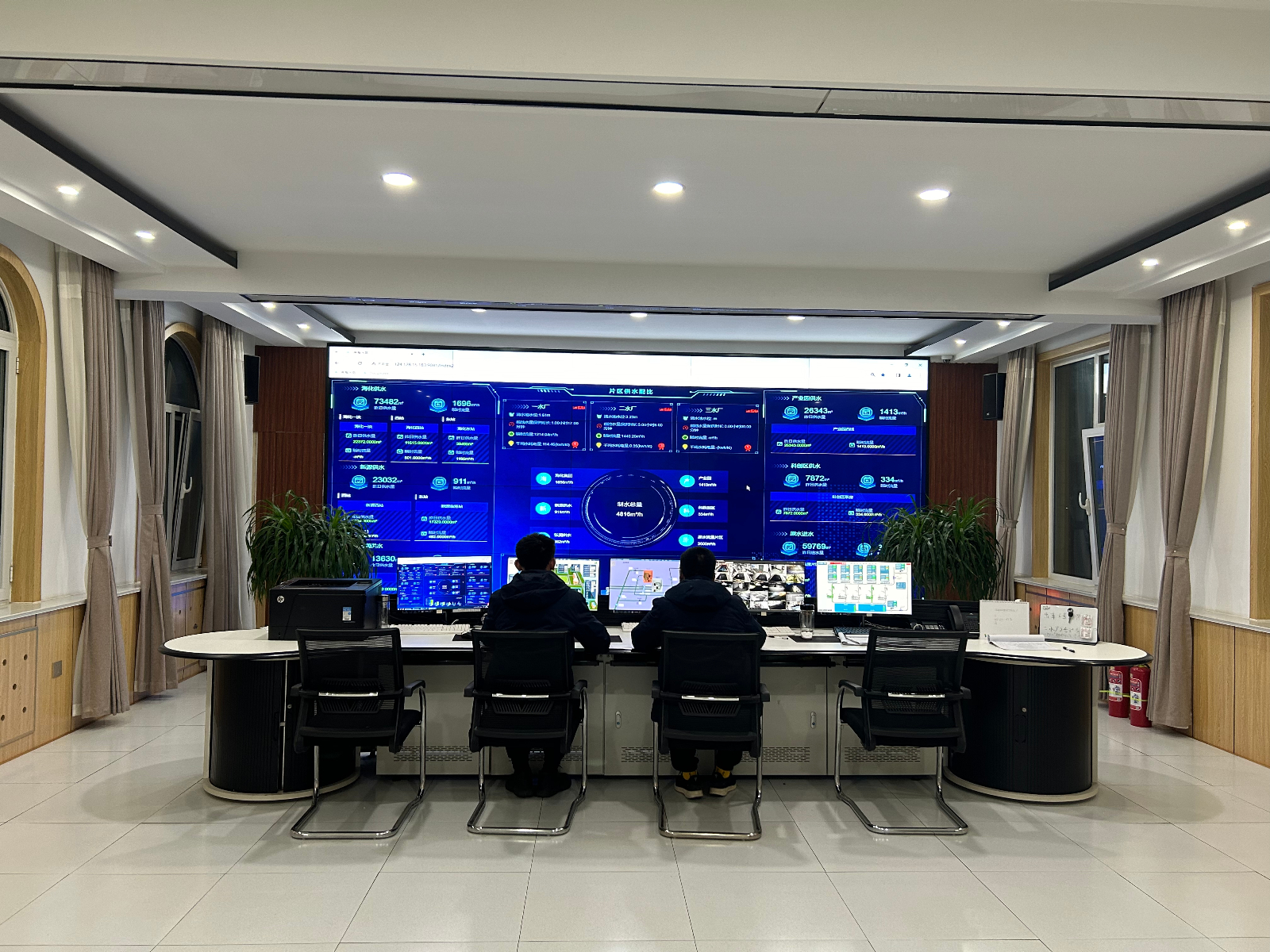 運行調度中心,通過智慧水務平臺,對水廠、加壓站等重點方位的供水水質、水壓、流量等參數(shù)進行實時監(jiān)測和預警,對供水區(qū)域內的水壓實施遠程自動監(jiān)視和控制,確保春節(jié)期間管網(wǎng)壓力平穩(wěn)。