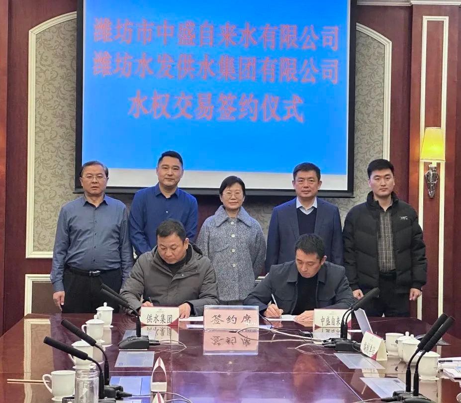 1月2日,水發(fā)水控濰坊水發(fā)供水集團(tuán)有限公司與濰坊市中盛自來(lái)水有限公司舉行水權(quán)交易簽約儀式,標(biāo)志著山東省首例跨區(qū)域取水權(quán)交易成功落地,是深入推進(jìn)水權(quán)改革的標(biāo)志性成果。省水利廳水資源處一級(jí)調(diào)研員題偉,濰坊市水利局黨組成員、市水利事業(yè)發(fā)展中心主任韓俊清,峽山區(qū)、濱海區(qū)水利局負(fù)責(zé)人參加評(píng)審并見(jiàn)證交易簽約儀式。